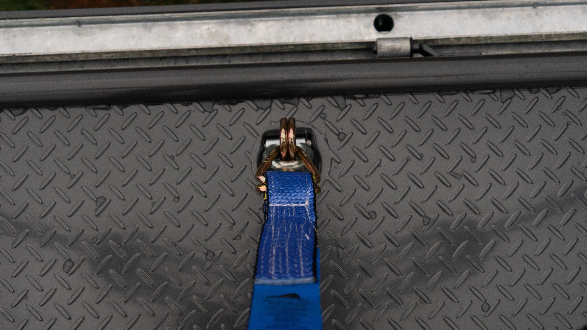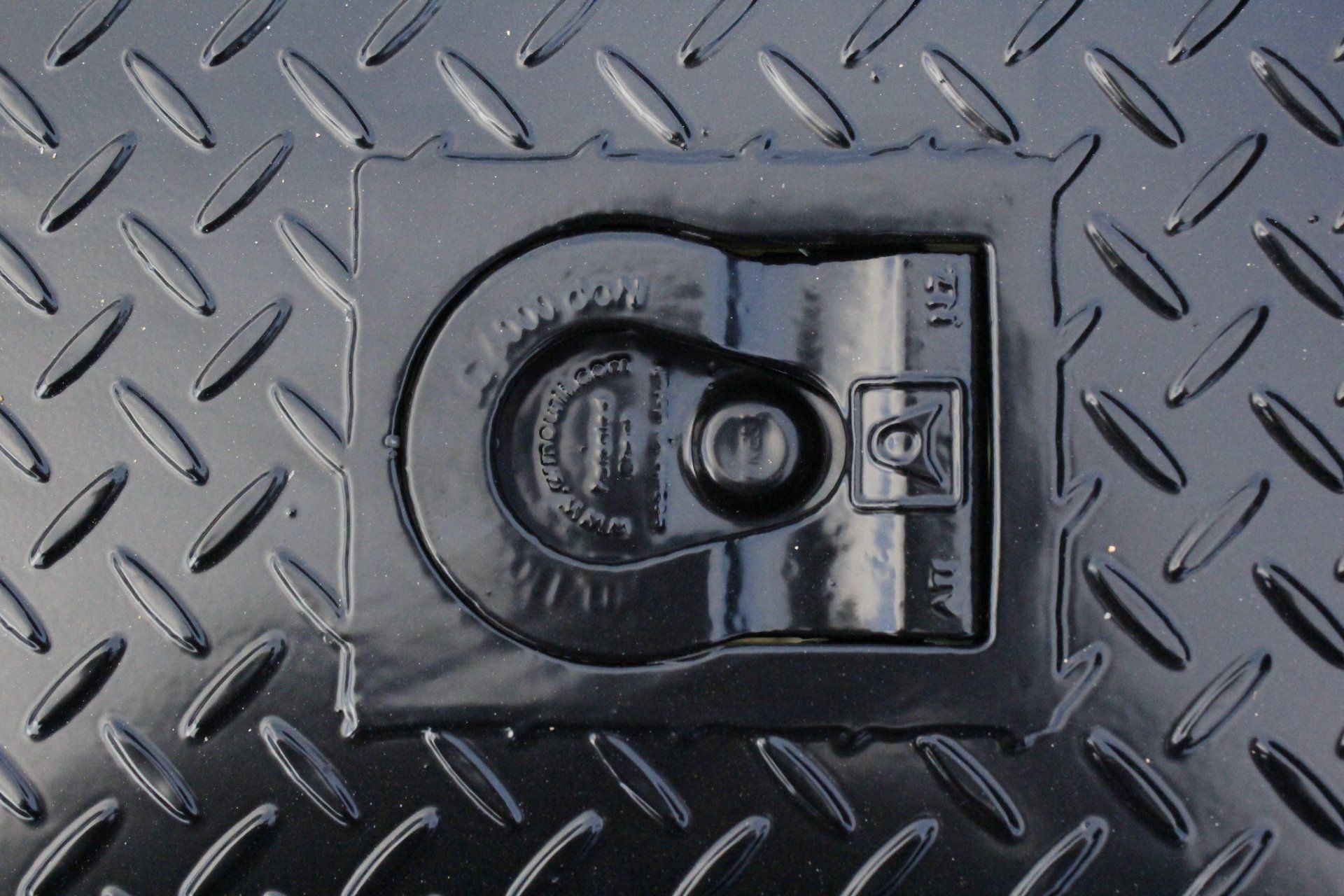 6 Tray mounted tie down lugs: Secures load low & tight, preserves sideboards. More available